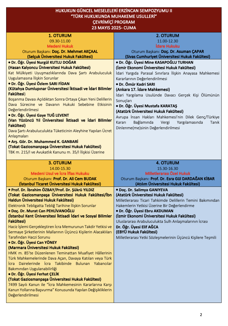 Hukukun Güncel Meseleleri Erzincan Sempozyumu II - "Türk Hukukunda Muhakeme Usulleri"