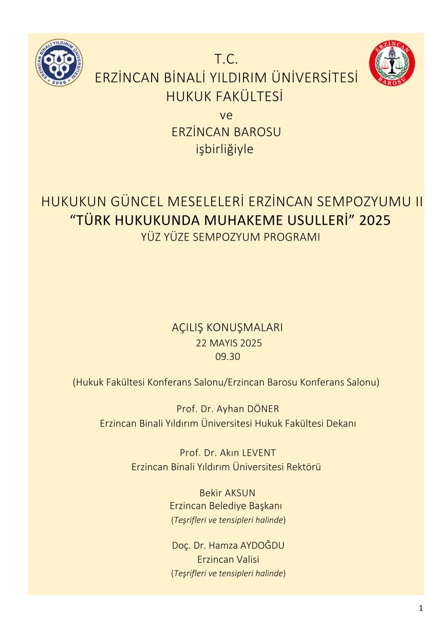 Hukukun Güncel Meseleleri Erzincan Sempozyumu II - "Türk Hukukunda Muhakeme Usulleri"